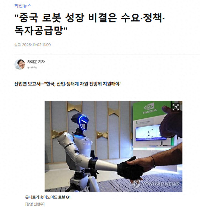 韩联社近日发文称,中国机器人产业全球领先,尤其是在工业机器人和人形机器人领域。增长动力主要源于政策支持,以及自主供应链的构建,使关键部件自给自足,降低生产成本。